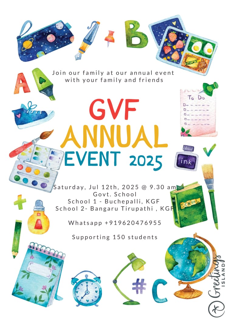 We are happy and proud to let you know the GVF annual Event 7 was fabulously successful !! The kids were ecstatic with things that were given and the school faculties were very happy and thankful. This time this event…